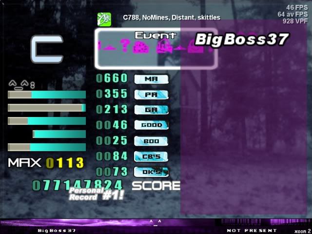 ![]() PA is okay, MA is utter CRAP, how are the CBs though? I would've fc'd but I missed one at the start by accident and then my left hand slipped during the 24th stream lol. |