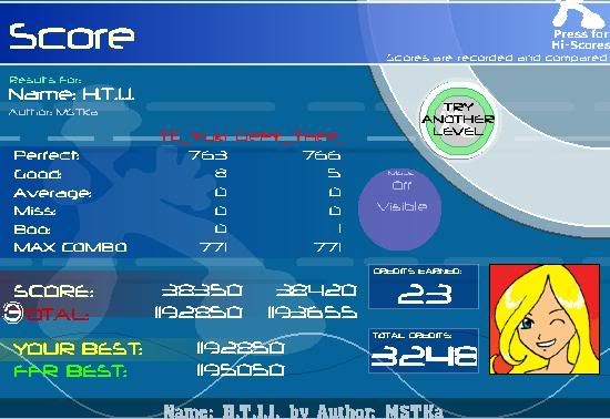 ![]() 1st place in Expert Division of Phynx's 2nd Unofficial FFR Tournament ![]() Tier Points: 605 (565 + 40 for 671 AAAs) Last edited by Zap_Track; 09-28-2008 at 05:27 PM.. |