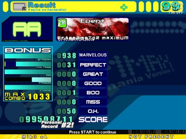 Sup tsutter? Saw your score and this was pretty close to it. 2 of the misses are from not tapping when I could have (it's weird this happens sometimes to me on quick taps, I only hit 1 note of the minijack and forget to hit the other for some reason lol).
