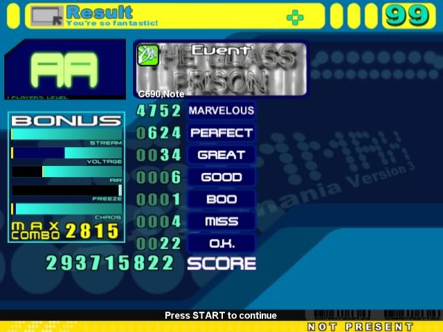Yeah, LOL. Thought, I get the Perfect on the easiest note in the whole song, the 101st, so that's kinda stupid.
