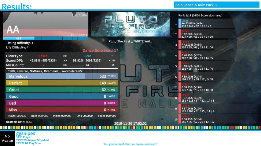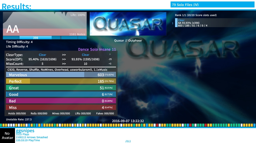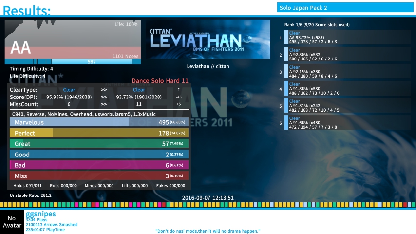 I'm def rusty asf myself. I've been playing BCMP songs on rates to help get my speed back up to par since I've always been shit with MA lawlawlawl Himoko on 1.2x rate is fucking hilarious btw.![]() ![]() ![]() ![]() Meh start, at least. xD |