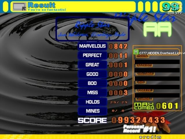 ![]() my keyboard is going dead ![]() i thought 28 was good a few months back lol. i can probably get around 8 now ![]() MA isn't top notch for me or anything but my first AAA ![]() LOL ![]() had the whole song quadded past the 12th notes and really ****ed up on the end stream ![]() sightread... i don't remember anything about this file ![]() who ever expected single digit perfects on a necros file? lol ![]() i'm not as slow as i used to be but i'm still pretty slow sigh |