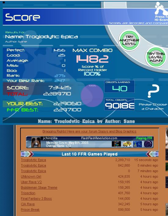 ![]() ![]() And would you accept this score based on the fact that somehow I can play logged-in FFR but not be logged into the site? I swear I dunno what's up with this. DAMN IT, Kota, lol. |