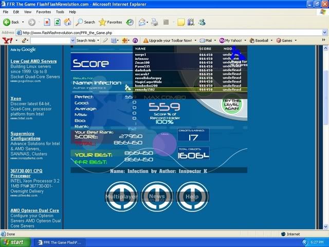 ![]() [My Profile] | [My Music] | [Play FFR] | [My Photobucket] | [My DeviantArt] AAAs: 210 (186+7+17) Best AAAs: Vertex BETA, Fighting for Control, Nova Pulser Recent AAAs: {Firestorm}, Dazzling Destiny, Hellbeat v2p 2nd place in 3rd Official Tournament 1st place in Jugglin/Jteh's 1st Tournament |