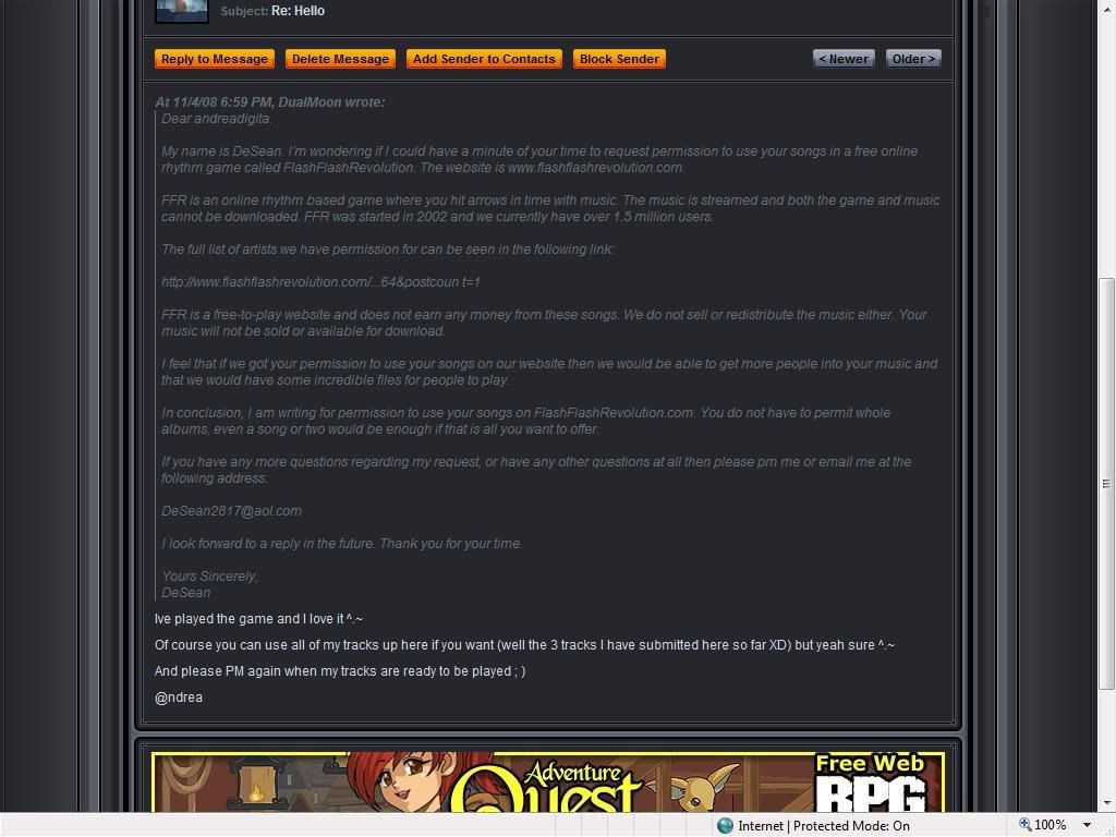 "LET ME USE YOUR MUSIC...OR I WILL EAT YOUR BABIES ALIVE!" PS. I'd suggest you to be a little bit more formal in your e-mails. You might scare the artists away like this. PPS. White text ;D