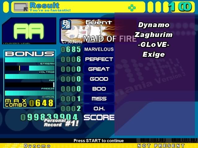 ![]() Pretty damn good for me. Used C560 (my alternate) because some steps in this song are VERY far apart.