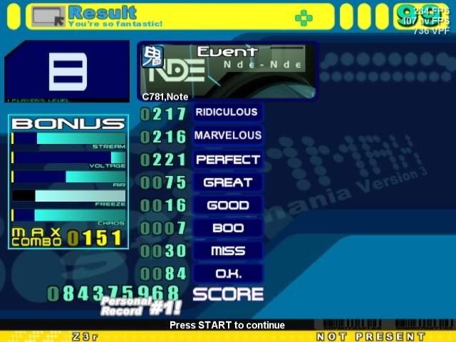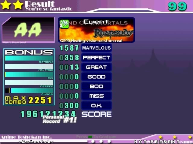 During the easy part I thought I had enough time to lift my hands up and adjust the keyboard, but it gave me a miss. This would've been a 2 greats fc. ![]() |