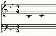 Hmm... Bb major... Starts on tonic... moves up to C... 4/4 Time signature... Two notes... No anacrusis... No bass...