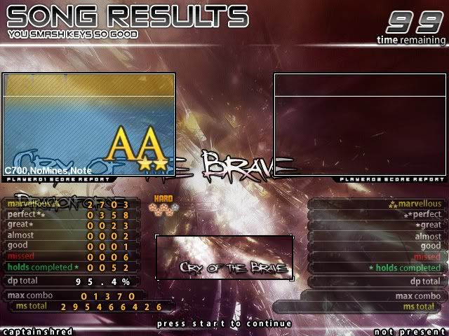 thats like me and blue arrow playing 20031023 of coarse weare gonna AAA that but then make us play disregard or some outragiuos song and they just keep there kool while we cant compete O_o |