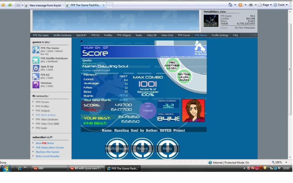 Haven't played for a few days. Ill get a score tomorrow. I don't know why you picked this song...you knew I was bad at it since this is the song you beat me at a long time ago. Last edited by Gun92; 09-1-2009 at 09:39 PM.. |