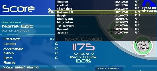 (5)- AAA (1,734,450) (4)- 5 or fewer (1,733,075) (3)- 12 or fewer (1,731, 150) (2)- 25 or fewer (1,727,575) (1)- Full Combo (1,704,200) #2. Abtrusity: (6)- AAA (1,112,900) (5)- 3 or fewer (1,112,075) (4)- Single Digit Good (1,110,425) (3)- 15 or fewer (1,108,775) (2)- 25 or fewer (1,106,025) (1)- Full Combo (1,093,650) #3. AIM Anthem: (Boo rule does not count) (7)- 20 or fewer (1,135,300) (6)- 60 or fewer (1,124,300) (5)- Full Combo (1,096,450) #4. ASB: (5)- AAA (1,329,900) (4)- 2 or fewer (1,329,350) (3)- Single Digit Good (1,327,425) (2)- 15 or fewer (1,325,775) (1)- Full Combo (1,306,525) #5. Balloon Fever: (7)- 2 or fewer (1,502,950) (6)- Single Digit Good (1,501,025) (5)- 20 or fewer (1,497,450) (4)- 40 or fewer (1,491,950) (3)- Full Combo (1,476,000) #6. Caprice: (7)- 30 or fewer (2,005,925) (6)- 60 or fewer (1,998,500) (5)- Full Combo (1,960,550) #7. Carrosuel Paradise: (5)- AAA (1,467,850) (4)- 2 or fewer (1,467,300) (3)- 15 or fewer (1,463, 725) (2)- 25 or fewer (1,460,975) (1)- Full Combo (1,441,725) #8. CIA Rave: (4)- AAA (1,643,000) (3)- 3 or fewer (1,642,175) (2)- 20 or fewer (1,637,500) (1)- Full Combo (1,615,500) #9. Cutting Circles: (5)- AAA (1,395,000) (4)- 2 or fewer (1,394,450) (3)- 15 or fewer (1,390,875) (2)- 25 or fewer (1,388,125) (1)- Full Combo (1,370,250) #10. Delirium: (5)- AAA (1,670,900) (4)- 2 or fewer (1,670,350) (3)- Single Digit Good (1,668,425) (2)- 30 or fewer (1,662,650) (1)- Full Combo (1,642,025) #11. Dot Death (steath remix): (5)- AAA (1,497,300) (4)- 2 or fewer (1,496,750) (3)- 12 or fewer (1,494,000) (2)- 25 or fewer (1,490,425) (1)- Full Combo (1,471,175) #12. End Night: (7)- AAA (1,745,300) (6)- 5 or fewer (1,743,925) (5)- Single Digit Good (1,742,825) (4)- 15 or fewer (1,741,175) (3)- 40 or fewer (1,734,300) (2)- Full Combo (1,715,050) #13. Epic: (6)- AAA (1,821,250) (5)- 3 goods or fewer (1,820,425) (4)- Single Digit Good (1,818,775) (3)- 15 or fewer (1,817,125) (2)- 30 or fewer (1,813,000) (1)- Full Combo (1,789,625) #14. Etude to a dragon: (4)- AAA (1,191,950) (3)- 4 or fewer (1,190,850) (2)- 15 or fewer (1,187,825) (1)- Full Combo (1,171,325) #15. Evil Approaches: (5)- AAA (1,213,650) (4)- 2 or fewer (1,213,100) (3)- Single Digit Good (1,211,175) (2)- 20 or fewer (1,208,150) (1)- Full Combo (1,193,025) #16. Exciting Hyper Highspeed Star: (7)- Single Digit Good (2,069,875) (6)- 40 or fewer (2,061,350) (5)- Full Combo (2,003,600) #17. Famouz: (5)- AAA (607,600) (4)- 2 or fewer (607,050) (3)- 5 or fewer (606,225) (2)- 15 or fewer (603,475) (1)- Full Combo (596,600) #18. Fantranstic: (4)- AAA (1,401,200) (3)- 3 or fewer (1,400,375) (2)- 15 or fewer (1,397,075) (1)- Full Combo (1,376,450) #19. Flight of the Bumble Bee: (7)- 2 or fewer (1,335,550) <---- Why is it lower than the full combo (6)- 20 or fewer (1,330,600) (5)- 50 or fewer (1,397,075) (4)- Full Combo (1,376,450) #20. For FFR: (6)- 2 or fewer (1,341,750) (5)- Single Digit Good (1,339,825) (4)- 15 or fewer (1,338,175) (3)- 25 or fewer (1,335,425) (2)- 50 or fewer (1,328,550) (1)- Full Combo (1,300,925) #21. Force of Light: (6)- 1 or fewer (1,664,425) (5)- 4 or fewer (1,663,600) (4)- Single Digit Good (1,662,225) (3)- 15 or fewer (1,660,575) (2)- 25 or fewer (1,657,550) (1)- Full Combo (1,635,825) #22. Get Down: (5)- AAA (1,784,050) (4)- 4 or fewer (1,782,950) (3)- 12 or fewer (1,780,750) (2)- 30 or fewer (1,775,800) (1)- Full Combo (1,752,435) #23. Gradeus: (6)- AAA(2 goods) (2,332,200) (5)- 2(4) or fewer (2,331,650) (4)- Single Digit Good (11) (2,329,725) (3)- 15(17) or fewer (2,328,075) (2)- 30(32) or fewer (2,323,950) (1)- Full Combo (2,290,950) #24. Hellbeat: (7)- 2(3) or fewer (780,650) (6)- Single Digit Good (10) (778,450) (5)- 20(21) or fewer (775,150) (4)- 40(41) or fewer (769,750) (3)- Full Combo (767,175) #25. Hungarian Dance #7: (5)- AAA (790,500) (4)- 2 or fewer (789,950) (3)- Single Digit Good (788,025) (2)- 20 or fewer (785,000) (1)- Full Combo (776,750) #26. Hyper Pressure: (4)- AAA (1,722,050) (3)- 3 or fewer (1,721,225) (2)- 20 or fewer (1,716,550) (1)- Full Combo (1,691,800) #27. Jelly Roll Blues: (7)- AAA (1,205,900) (6)- Single Digit Good (1,203,425) (5)- 20 or fewer (1,200,400) (4)- 35 or fewer (1,196,275) (3)- 50 or fewer (1,192,150) (2)- Full Combo (1,174,275) #28. Klung Kung: (5)- 2 or fewer (2,584,850) (4)- 7 or fewer (2,583,475) (3)- 15 or fewer (2,581,275) (2)- Full Combo (2,540,025) #29. Kick Your A: (5)- AAA (1,608,900) (4)- 3 or fewer (1,608,075) (3)- Single Digit Good (1,606,425) (2)- 30 or fewer (1,600,650) (1)- Full Combo (1,581,400) #30. Lawn Wake IV: (7)- 5 or fewer (1,640,075) (6)- 15 or fewer (1,637,325) (5)- 30 or fewer (1,633,200) (4)- 50 or fewer (1,627,700) (3)- Full Combo (1,600,200) #31. Legend: (6)- AAA (1,765,450) (5)- 2 or fewer (1,764,900) (4)- Single Digit Good (1,762,975) (3)- 15 or fewer (1,761,325) (2)- Full Combo (1,733,825) #32. Lovely Lovely Lovely: (5)- AAA (1,280,300) (4)- 5 or fewer (1,278,925) (3)- 15 or fewer (1,276,175) (2)- 25 or fewer (1,273,425) (1)- Full Combo (1,258,300) #33. Mother of God: (4)- AAA (2,149,850) (3)- 4 or fewer (2,148,750) (2)- 25 or fewer (2,142,975) (1)- Full Combo (2,112,725) #34. Nova Pulser: (7)- 4(11) or fewer (1,178,075) (6)- (16) Single Digit Good (1,176,700) (5)- 15(22) or fewer (1,175,050) (4)- 25(32) or fewer (1,172,050) (3)- 35(42) or fewer (1,169,550) (2)- Full Combo (1,151,675) #35. Pants (7)- 60 or fewer (4,670,700) (6)- Full Combo (3,984,120) #36. Playdoh: (4)- AAA (1,528,300) (3)- 4 or fewer (1,527,200) (2)- 20 or fewer (1,522,800) (1)- Full Combo (1,502,175) #37. Rondo Alla Turca V1: (7)- 2 or fewer (2,402,225) (6)- Single Digit Good (2,401,125) (5)- 15 or fewer (2,398,375) (4)- 30 or fewer (2,395,625) (3)- 50 or fewer (2,391,500) (2)- Full Combo (2,361,250) <----- Only 2 points for me on this #38. Rondo Alla Turca V2: (6)- 1 or fewer (2,360,100) (5)- 5 or fewer (2,358,175) (4)- 15 or fewer (2,356,525) (3)- 25 or fewer (2,346,900) (2)- 40 or fewer (2,319,400) (1)- Full Combo (2,319,400) #39