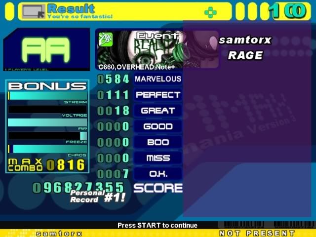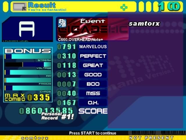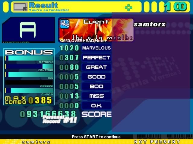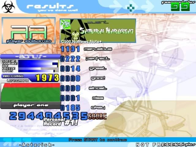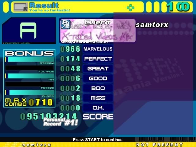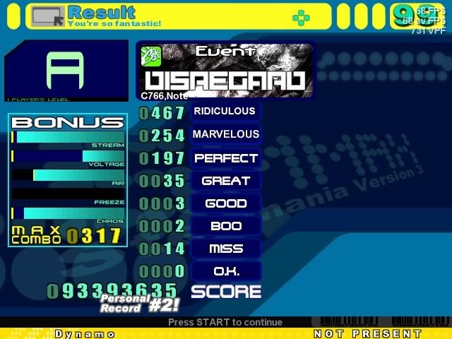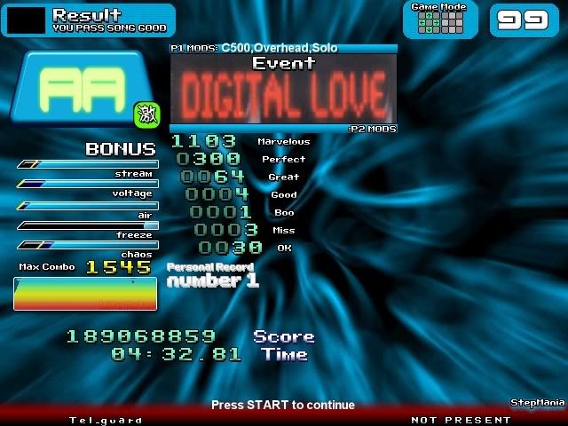 On a different set of notes: IAMME's Gargoyle (Full Version): ![]() ![]() And, I personally love this song. (Yellow Guy in a radioactive suit is who?)'s Digital Love ![]() Very close to the full combo. A quick staricase stream near the end got me. |