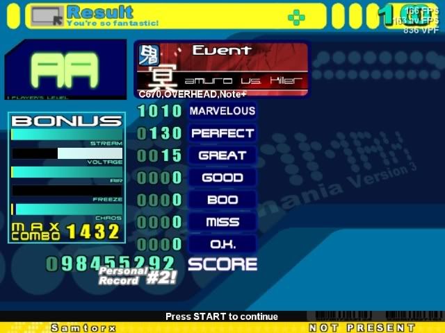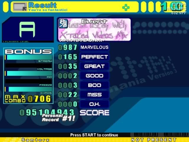 That's a nice Tokyo Style Speedcore, Shash. My best score is 40 perfs and some odd greats I think.