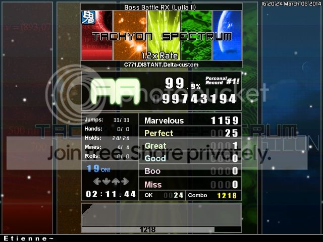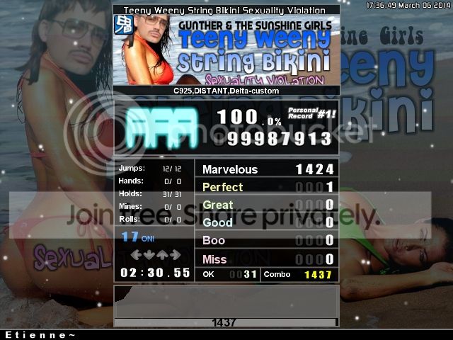 Tosh, that Stay in Your Room K MA's pretty nice. Welcome to the index crew, Plan. Nice near teens perfects on Oh Delia. I haven't had time to play recently with track and school but hopefully I can get some scores in here soon.