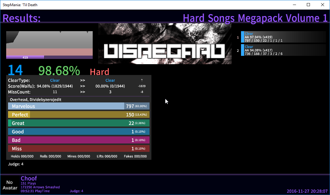 ![]() Solid sightread I think...could clean up the CBs a bit ![]() BAHAHAHAHAHAHAHAHAHAH Holy fuck I did not see that coming ![]() It was alright ![]() ? ![]() rip FC ![]() Oops ![]() Oops ![]() Bad tbh ![]() Dammit Roar those staccato mines on that hand hold Dx ![]() This was a fun file on 1.2 ![]() Bad ![]() Surprised that I AA'd this on 1.3 I got tanked by the trills