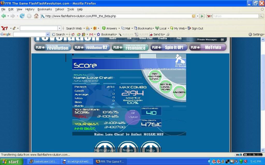 To lazy to AAA, lol; got the good in the beginning of the song (very first few arrows), but I kinda started to daydream after I got it instead of failing out, and I ended up with the rest of the song perfect, realizing I was playing FFR at around 1900 (big shock to me that I was playing, believe it or not).