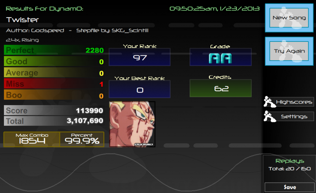 ![]() This took wayyyy too many tries (17). Still finding it awkward to PA anything really edit: ![]() ![]() Oh yeah, now I remember why I stopped playing this game Last edited by Dynam0; 01-23-2013 at 01:05 PM.. |