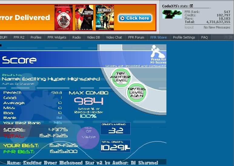 hehe I now have 340k and 150k will go to ffr tshirt. lol I guess I can afford all the songs after all... Now to improve on EHHS v2 to have the chance to win more creds.