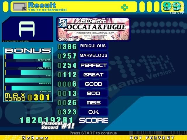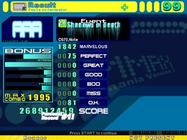 ![]() Jumps with jacks are annoying. Long Song is Long ![]() Definetely Improved. ![]() Don't remember if I had a better one. ![]() Another Improved. ![]() Sightread, stupid hands. ![]() 2nd last improved. ![]() Finally AA'd.