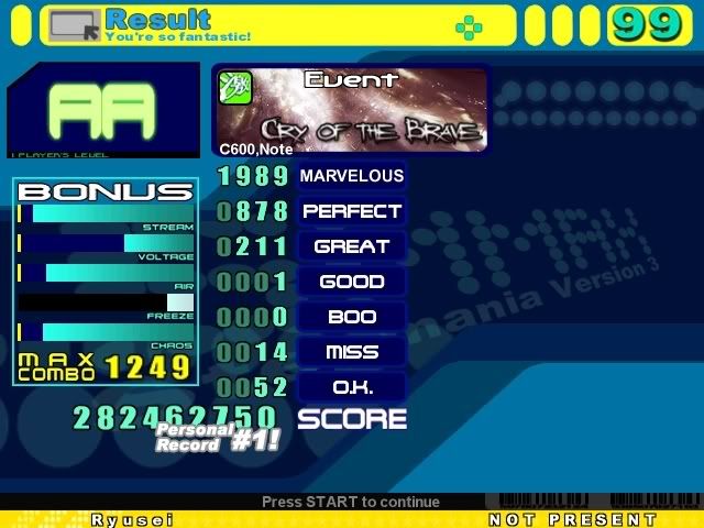 'Twas a pretty good score for me. Edit: Hell yeah finally FC'd this mother. I'll AAA someday. ![]()