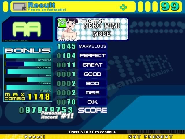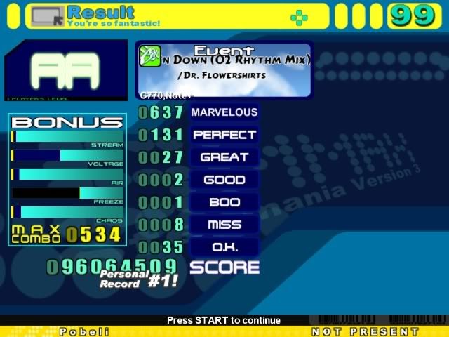 i played some stepmania today just for the hell of it. aa'd psmo rofl, sdg delirium heavy, aa'd oml too. indax cuz spread is too dangerous. no more sm unless im using it to figure patterns on feet |