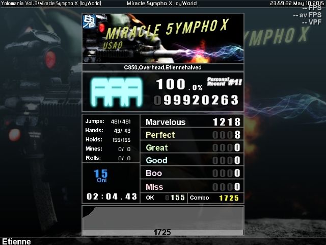 ![]() i'm very impressed every time I SDP anything ![]() This file is very fun and kinda challenging for me to keep my PA consistent upon so this AAA makes me happy ![]() the one score i'm the most proud of!!!! ![]() I know I AAA'd it a long time ago but I'm sure the MA was a bit worse and some older scores ![]() ps it burns arms nice MAs ![]() ![]() ![]() !!!!