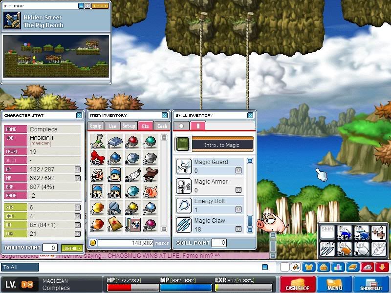I just restarted playing MS today... in the morning. I'm already at orbis gearing up for the trip to aquaroad... IM GONNA GETS ME A FRIGGIN TUBE LOLZ.