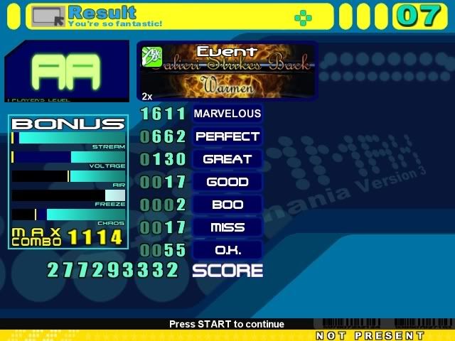 Toccata & Fugue time! MA/PA/combo ![]() CB's/machine-score ![]() Take your pick. XD I would improve my score if that song wasn't such a wrist-killer. : O |