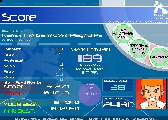 I'll edit with a SCREEN on my Endless Dream score. I love how I can't AAA under pressure. xD I've been screwing up in parts I've never messed up in. And lately, I've been messing up RIGHT when I'm about to get the AAA, and autofail ends my game. >: Last edited by psychopete; 04-1-2008 at 11:00 AM.. |