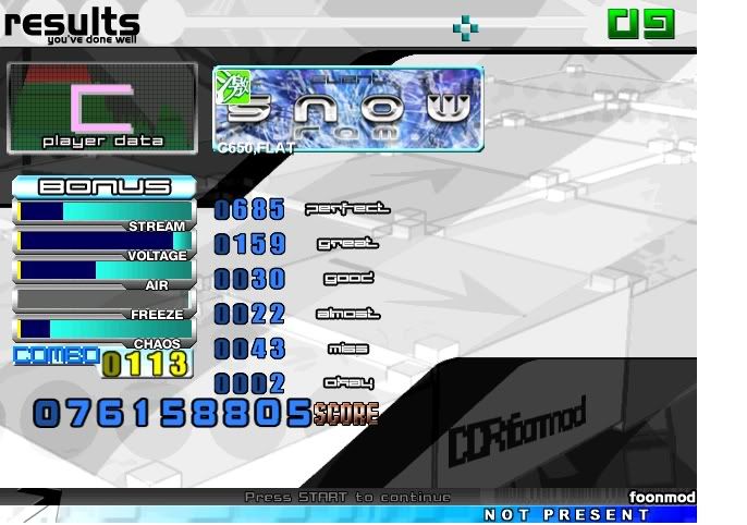 And yeah...I don't make threads unless I get something stupidly insane, which hasn't happened in a while. I don't have problems on the quadjacks. I have problems on the part before the middle with like quad-single-quad-single-streambegins. I get around 10 (+/- 5) CB's for the rest of the song. Really nice Death Reveals, sam. |