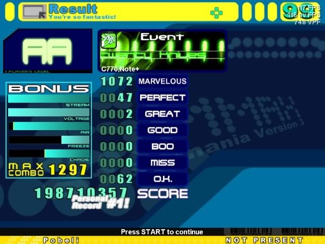 edit: http://glove.ddrgeek.com/index.php?s...F&searchMode=f ? That wasn't very hard to A. I got it first try and I havn't played in awhile. Seems like it might be AA'able to me. Which is surprising since I havn't passed that 960 bpm thing yet >_> Edit: OIC First pass on 960 was a B. Headshot 8) Now I don't have to play that anymore Xd