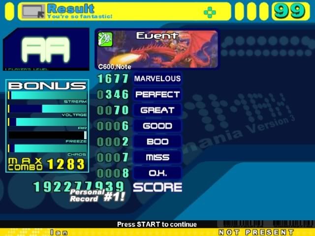 Since machinescore seems to be very important on this song: ![]() Actually i don't know why anyone should ever care for machine on it, just depends on if you're good early in the song or late in the song haha .![]() INSANE for me, don't have a chance in hell to beat this . ieat I challenge you to sup this score . |
