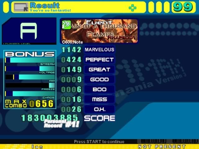 o_0 Nice Red Sign, Exo. Finally got a pretty good combo on Caprice ![]() I still can't hit those same 4 jumps...MA was garbage, but at least I FC'd ![]() |