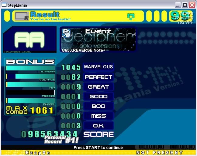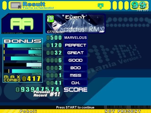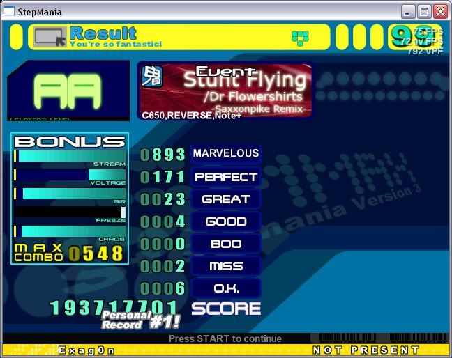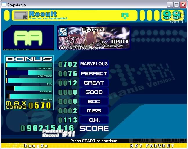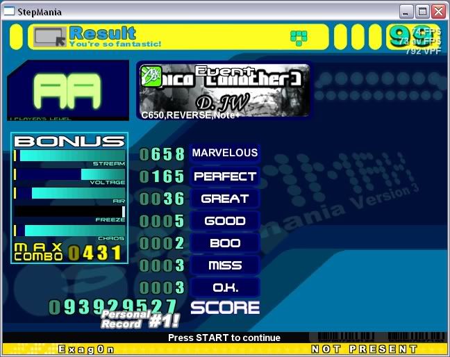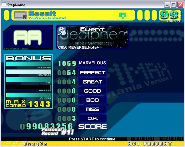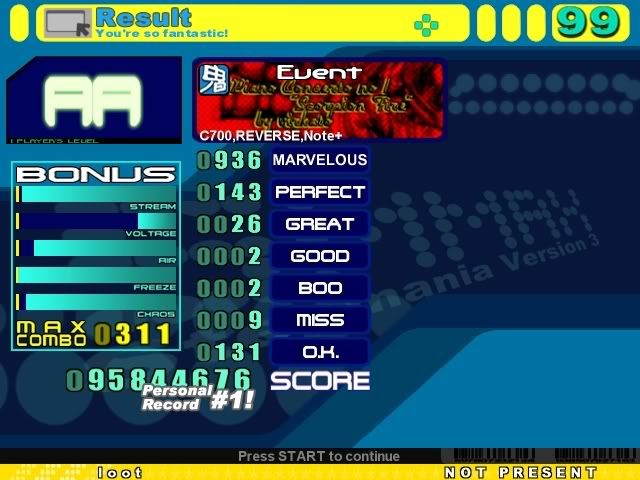 ![]() Sightread. ![]() 2nd try. InTENSE AA this. ![]() Sightread. Edit: The greats were keyboard greats from the very ending. I know this because I had some lag halfway through =/ ![]()