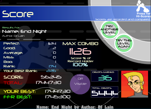 I have not made it past the third round in all the tourneys that placed me in advanced. EVER. Now I realize that I have gotten scores that are better than people in advanced, or even masters, but they were VERY indexable songs. If you look at my ranks, you'll see I have a 16-0-0-0 on Famouz. Definitely not advanced material. It really all depends on the song choice, like Niala said, and since the higher levels, such as advanced, are more prone to picking non-indexable songs, I believe I should be in inter. For now anyway.