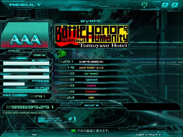 AAAed SSS (with mirror though =/) again, beating my 44p blackflag machine score. Then did the easier songs, and AAAed Ubertreffen (again) which beat my blackflag machine score too. ![]() ![]() Aw yeah. Full BCMP1 AAA! ![]() ![]() EDIT: Bloody hell. ![]() ![]() ![]() Last edited by LongGone; 06-20-2009 at 07:10 PM.. |