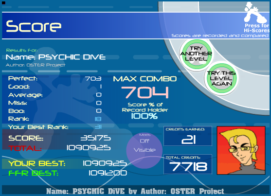 I've tried Psychic Dive a few times, and it's actually not an annoying song (yay!) and the steps aren't too bad, excepting the jump stream at around 500, which is where I'm getting 2-3 goods every time. Will get the AAA this evening probably, no time right now