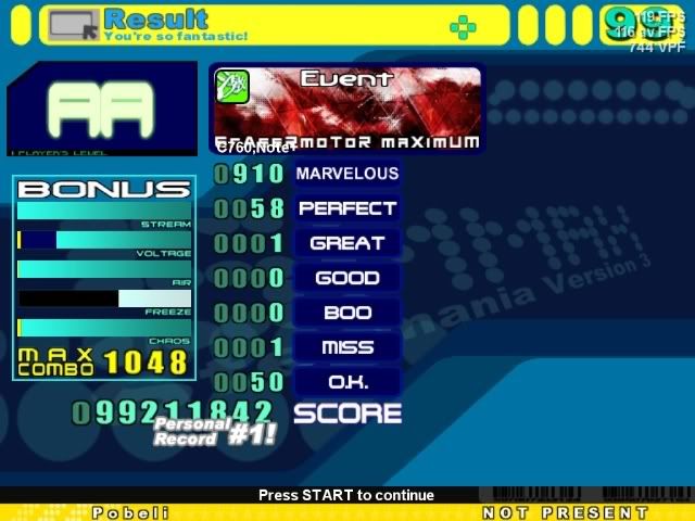 So close. ![]() ![]() I tried making a video of Sex Friend Bomb the Bass with judge (since it's so short, and my camera has a recording limit of 2 minutes) but I couldn't get any good scores, and I was starting to develop dumb habits, so I gave up. I might try 250BPM or something later, and if anyone could suggest a song that's only about 1:30 in length that I might make a video of, then feel free to. |
