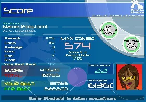 _____________________________________________ AAA - 189 Level rank Average Level - ? Best legit. FC - Runnymorning (SGX Mix) ITG Overall % - 97.60(not updating anymore) ___________________________________ Winner of HammyMcSquirrel's tournament Winner of rshadow8888's tournament Winner of travman301's tournament Winner of Colt.45's tournament |