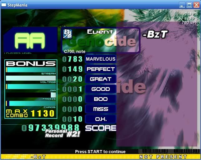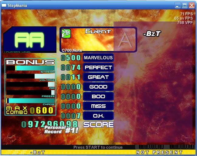 ![]() Patashu file I think. Funny song. Funny AA. ![]() The best I'll ever get with this song. ![]() Yay, a FC! ![]() Crazy.. ![]() Pisses me off I was so close to getting a AA. ![]() Lol.
