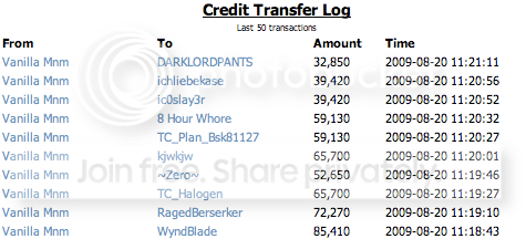 WyndBlade - 85,410 RagedBerserker - 72,270 TC_Halogen - 65,700 kjwkjw - 65,700 TC_Plan_Bsk81127 - 59,130 8 Hour Whore - 59,130 ~Zero~ - 52,650 1st Place Intermediate (Dreddshott/[Falcata]) - 45,990 ic0slay3r - 39,420 2nd Place Intermediate (Dreddshott/[Falcata] - 39,420 ichliebekase - 39,420 DARKLORDPANTS - 32,850 If anyone sees a mistake or something, then mention it quick. I'll be sending out credits in a minute. |
