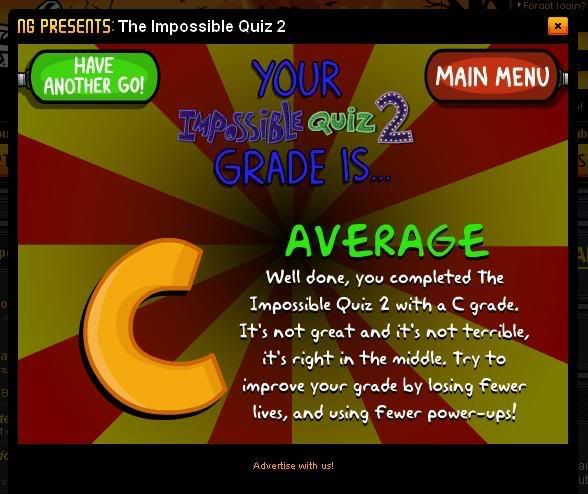Even now that I know how to beat the Impossible Quiz 2, I still can't get a decent grade. |
