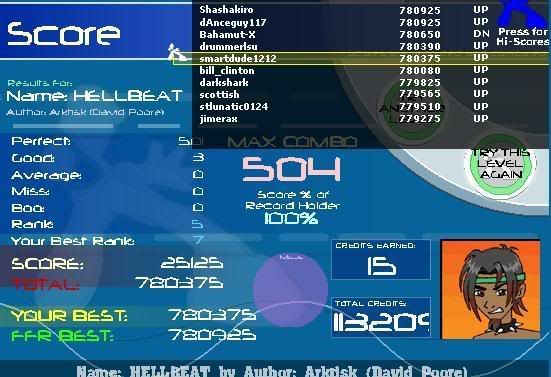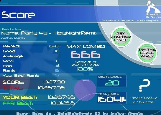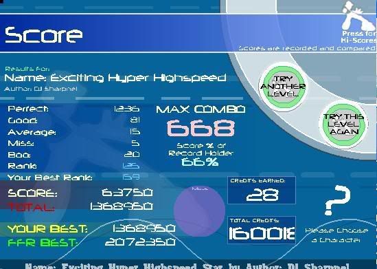 More frequently avmissed the jack so far today. Sup Bill. ![]() ![]() I saw all 3 goods. One in the piss-easy 8ths before the whole jack-crossover excitement. Obviously the mandatory jack good. And then near the end of the jack sequence stuff. I have PFC'd (1g) the entire jack part before, so I'm sure I could AAA this. =O Anyway. Go sup me plz DS. ![]() And 15 pts behind Drummer, who I ended up losing to on this song. :P |