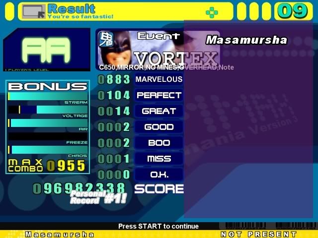 ![]() EDIT: AAA'd through 700+ combo. Then I ****ed it up on an easy part. ![]() Last edited by Ravia; 11-20-2007 at 01:38 PM.. |