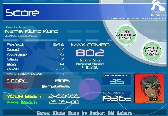 ....yes i am using my friends hands lolhttp://youtube.com/watch?v=m57_ODQdxVI second video....i get 14-0-0-2. I get a FC. but oh well.... hopefully you believe me colt ![]() http://youtube.com/watch?v=wrVJHKttuIo since you cant see the second score too good heres a SS. ![]()