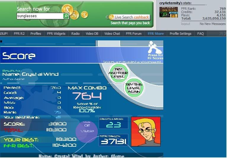 EDIT: Score and Boo Info 1183100 - 0 Boos = 1183100 ![]() This was only my second try.. but I don't think I can do much better.. I've never AAA'ed a VC to date. My first try was random miss + boo out.. My third try was 4-0-1-0 .Last edited by cry4eternity; 06-19-2008 at 01:57 PM.. |