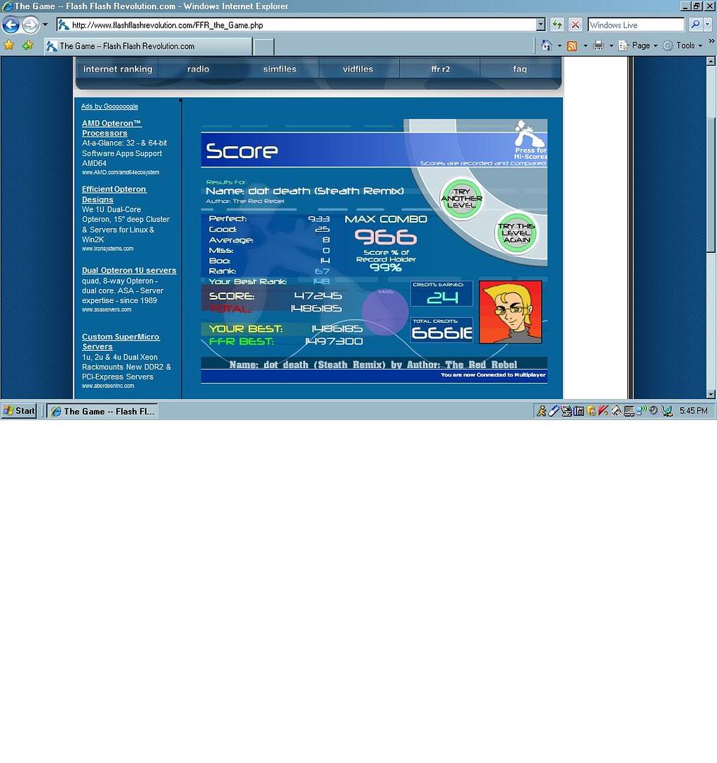 ok I know I'm a noob and shouldn't post in here but I'm going to anyway, Shash are you trying for the scoreboard on runny morning (sgx mix) or just messing around that's all you keep trying. (sorry for saying messing around but not trying) And for the record yes Shash you're right it can't be fc'd (chrono trigger) so I stopped trying keep it up guys!