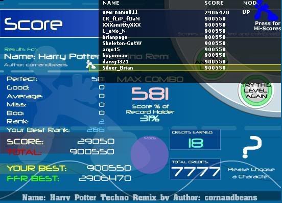 http://www.flashflashrevolution.com/...gameid=5183211 http://www.flashflashrevolution.com/...gameid=5182971 Sightread: http://www.flashflashrevolution.com/...gameid=5182741 Also sightread: http://www.flashflashrevolution.com/...gameid=5182715 Also sightread The Brain of the Moon for 10-0-0-1 iirc, but my opponent left, so now I can't see much of that score in MP scores, but w/e.