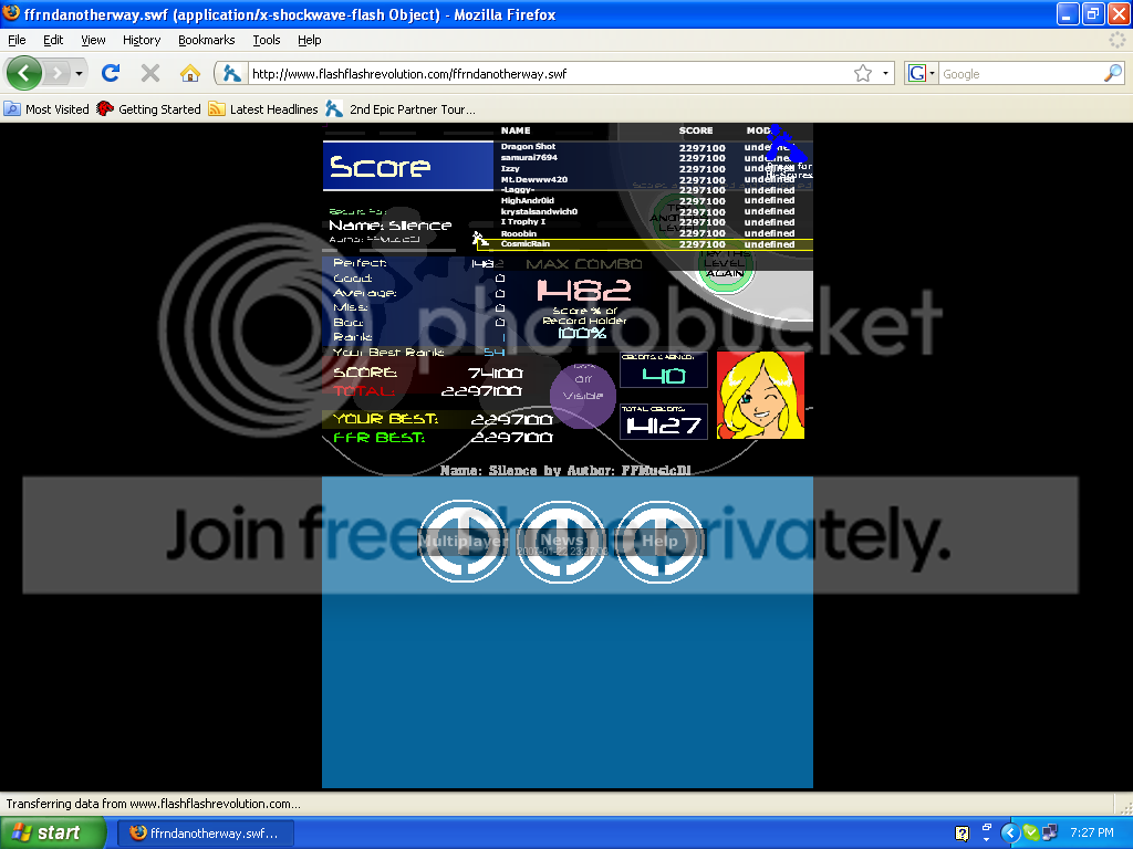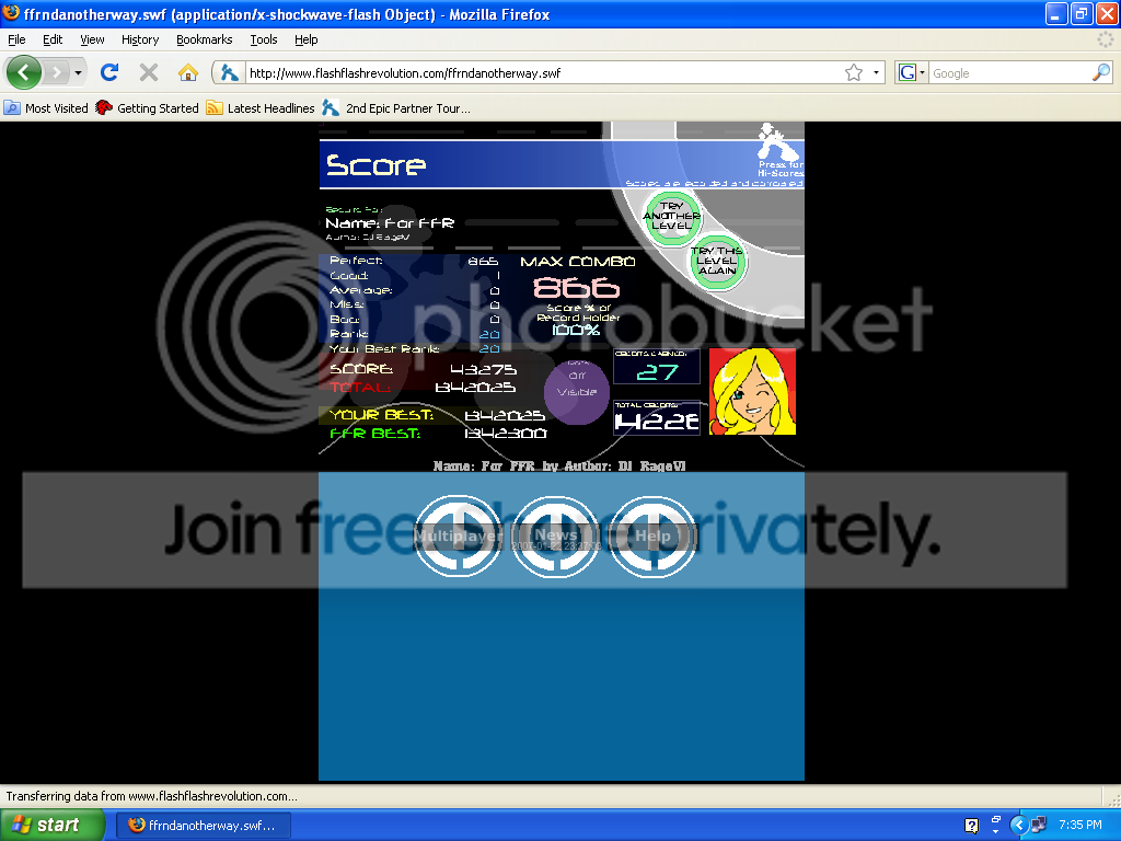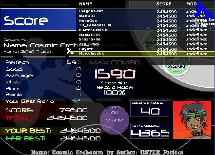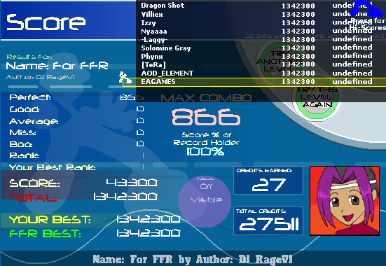 Here's my For FFR score, I didn't get around to the other songs yet though. ![]() Also zero sent me a 3g hajnal score. |