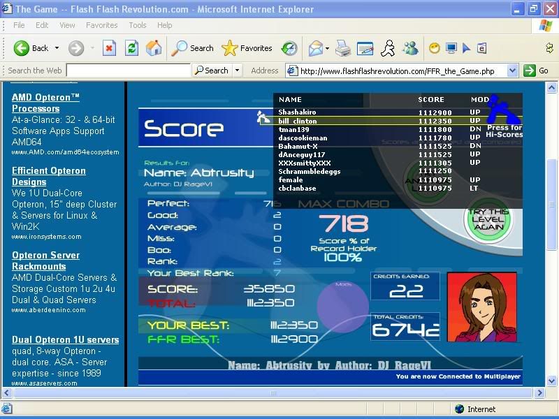 For whoever didn't see it on the last page, here's my last vid: www.mikelean.com/hyper.avi And here's the next vid I just made: www.mikelean.com/carrousel.avi Umm yeah I COMPLETELY didn't realize that was my second try, my mind is mush tonight. I give up on balloon for the night, I keep getting BS misses even though I feel like I'm hitting everything ... I mean I just FC'd J6 for christ's sake.. the closest I came in FFR was a miss on step 782 with a 20:1 PA grr